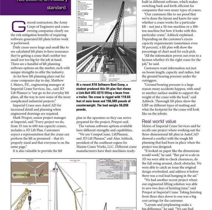 “The market for lift planning software is quite strong in North America,” said Meehan of LiftPlanner Software, LLC. “Companies are devising strategies to avoid the ‘race to the bottom’ of competing solely on cost. They are seeking to add value through offering a lift planning service. This service adds to their revenue stream and helps differentiate them from the competition.”